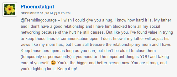 *NOTE: Above, Phoenixtatgirl (Julie Anne Smith’s apostate daughter) is encouraging another apostate rebellious daughter to press on in her soul damning LGBT apostasy, and lamenting that her father (Steve Smith) is blocked from all her social media, because he hasn’t adjusted his views (apostasized) like her and her mother yet. Tragedy upon tragedy. An apostate daughter encouraging another apostate daughter to continue in apostasy, while hoping dad will one day be apostate too.