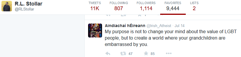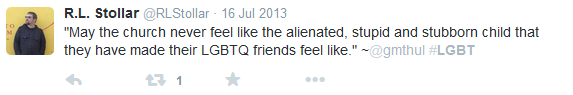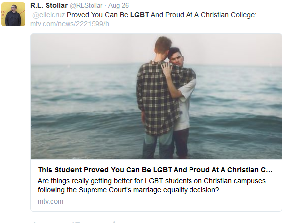 R.L. Stollar’s twitter account is full of bold LGBT APOSTASY, pro-LGBT propaganda, and pro-LGBT MARRIAGE tweets: